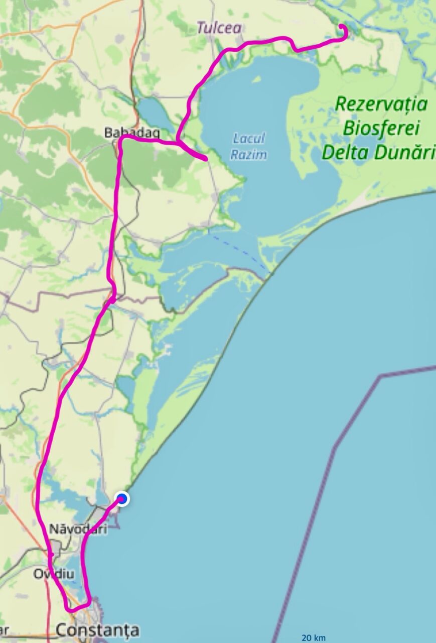 Wir wollen eigentlich möglichst dicht an einer Lagune entlang fahren. Dann werden wir aber mit einer Straßensperre gestoppt. Militär. Sie informieren uns, dass die Sperrung noch 50 Minuten dauern wird. Wir drehen lieber um und nehmen die Hauptstraße. Hier ist ordentlich Verkehr. Das ist die Hauptverbindung von Tulcea nach Konstanza. Wir fahren an einigen mit Nato-Stacheldraht umgebenen Militärgeländen vorbei.
