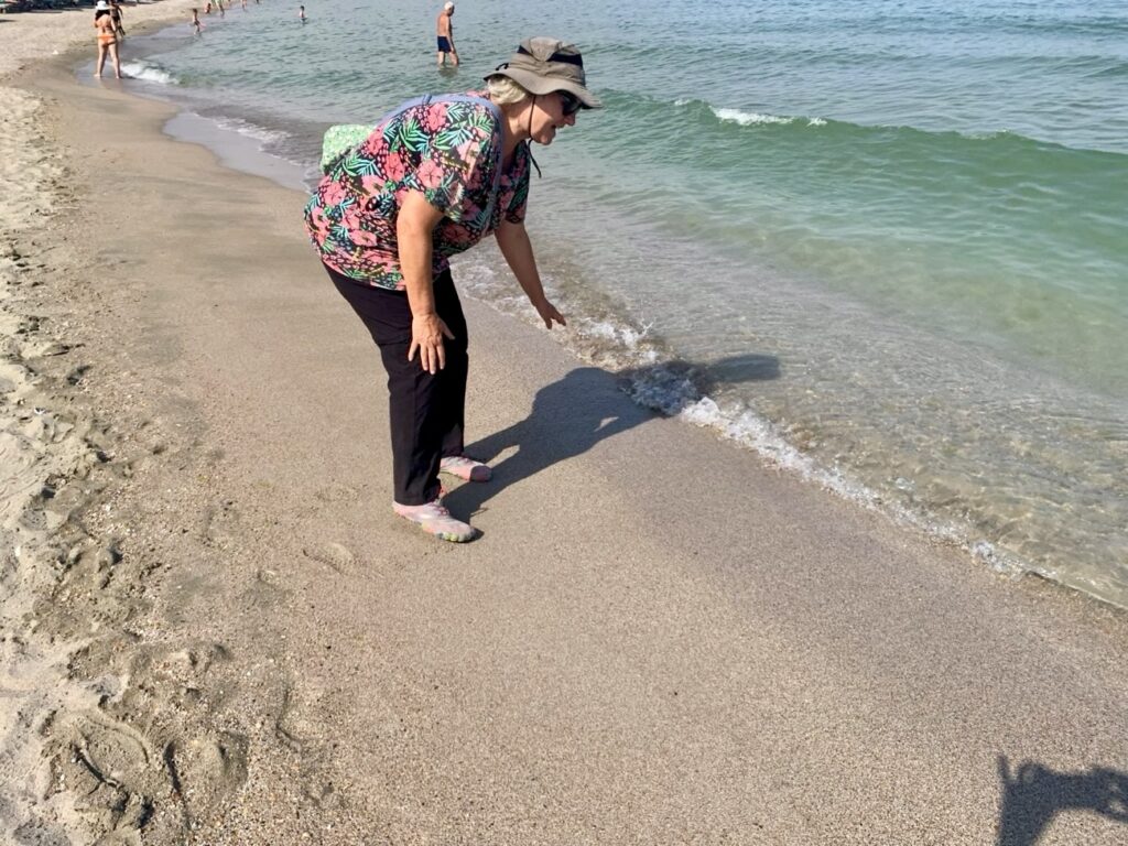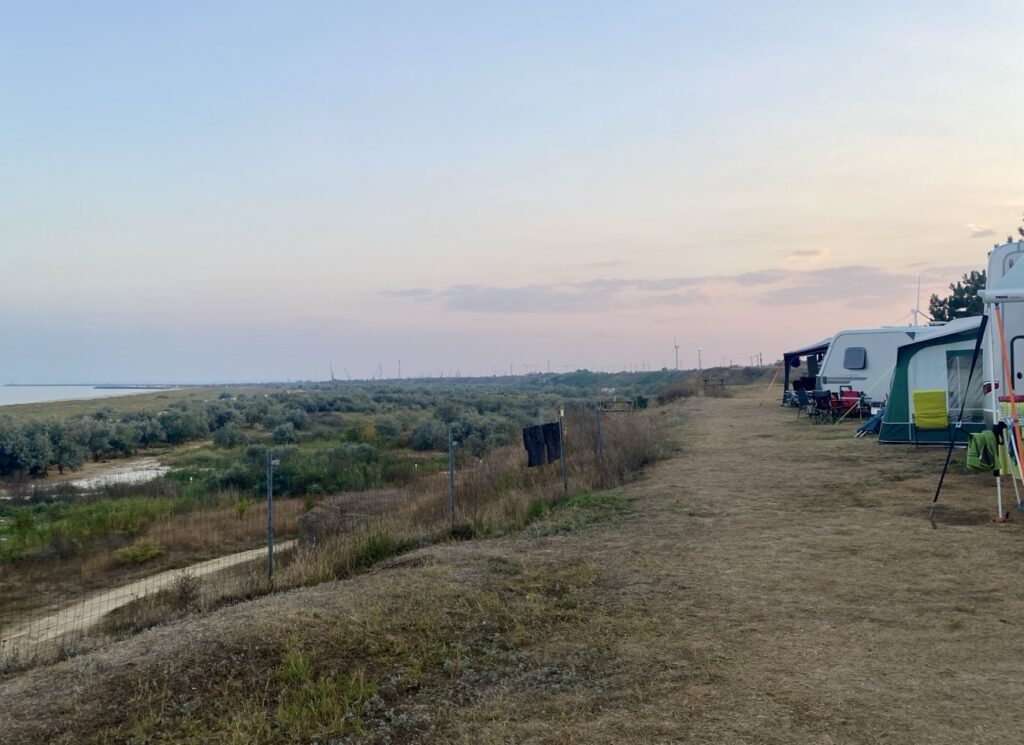 Dieser Platz liegt malerisch an einem Hochufer über dem Strand. Jetzt müssen wir natürlich nochmal in die Fluten springen. Einige Quallen liegen am Strand, ansonsten ist das Wasser warm und angenehm. „Hallo schwarzes Meer.“