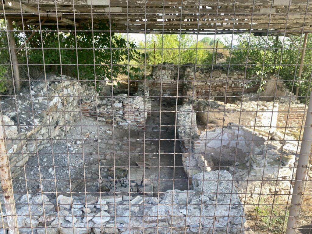 Aber so schließt sich noch ein Kreis. Die Ausgrabungen hier sind allerdings stark vernachlässigt. Ein paar Erklärtafeln stehen noch etwas lieblos herum, die ausgegrabenen Mauern sind zum Teil schon wieder überwuchert. Reste einer Basilika sind immerhin mit einer Holzhütte geschützt. Auch die Thermeist überdacht, die darf in einer römischen Festung natürlich auch nicht fehlen.