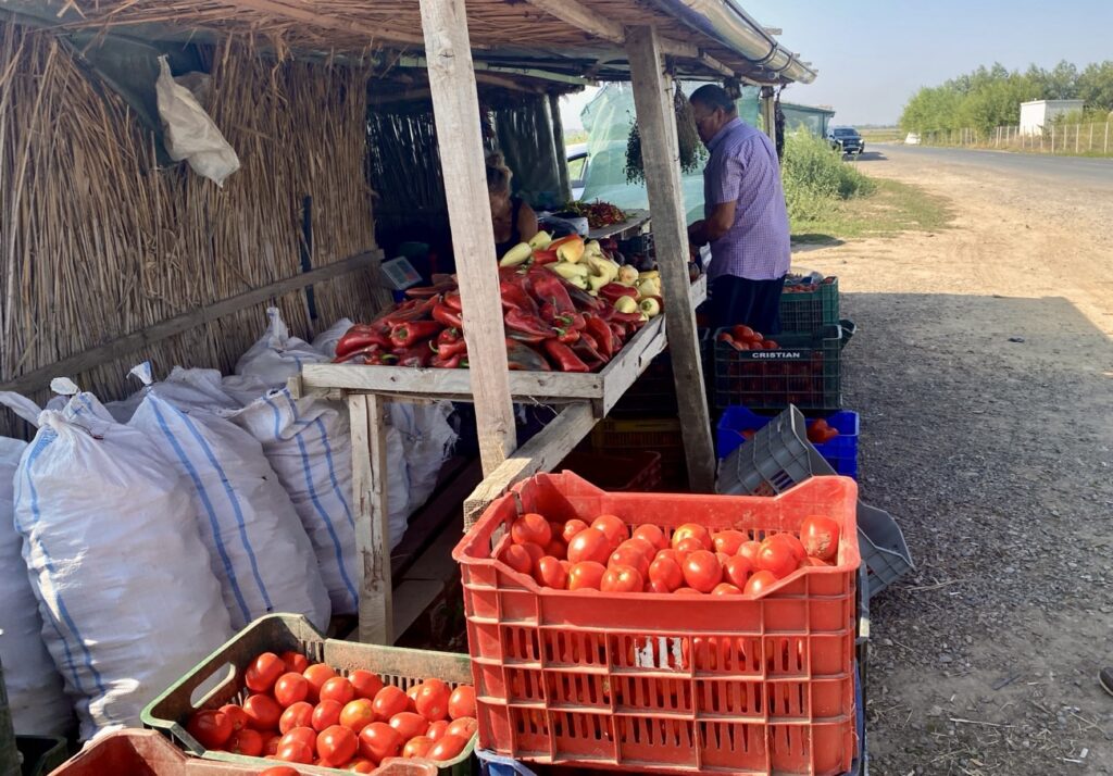 Jetzt geht es nach Süden, wir wollen nochmal direkt an die Küste, ans schwarze Meer. Wir nutzen die Gelegenheit und kaufen an einem der vielen Gemüsestände am Wegesrand ein. Gut 2 Euro für Kartoffeln, Zwiebeln, Tomaten und Paprika. Die Gemüsefelder liegen praktischerweise direkt hinter dem Stand. Viele Rumänen kaufen das Gemüse gleich säckeweise ein. Wahrscheinlich sind es Wiederverkäufer, die sich hier ihre Ware besorgen.