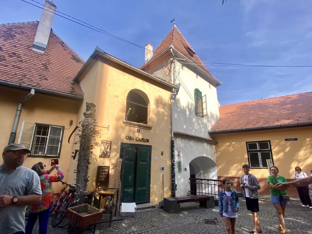 Der große Platz in Sibiu ist eigentlich ganz schön, obwohl er durchgehend gepflastert ist. Umgeben von herrschaftlichen Gebäuden. Hier treffen wir uns mit Hadar, unserem heutigen Stadtführer. Außer uns sind noch ein Pärchen aus Portugal, 2 junge Männer aus Israel und aus den USA, eine Frau aus Polen und eine Frau aus Rumänien dabei. Das ist das schöne an einer englischen Tour, das die Teilnehmer aus aller Welt kommen.