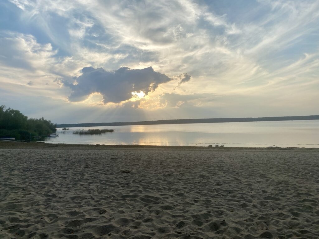 In der Nähe von Cottbus ist die Spree aufgestaut, die Spremberger Talsperre. Der Stausee kontrolliert den Wasserstand im Spreewald. Hier gibt es einen großen Campingplatz. Eigentlich ganz hübsch hier, ein netter Abend zum Abschluss. Ein letztes Mal Schlafen in unserem Minicamper auf dieser Tour.