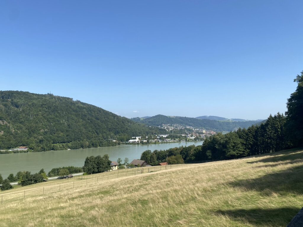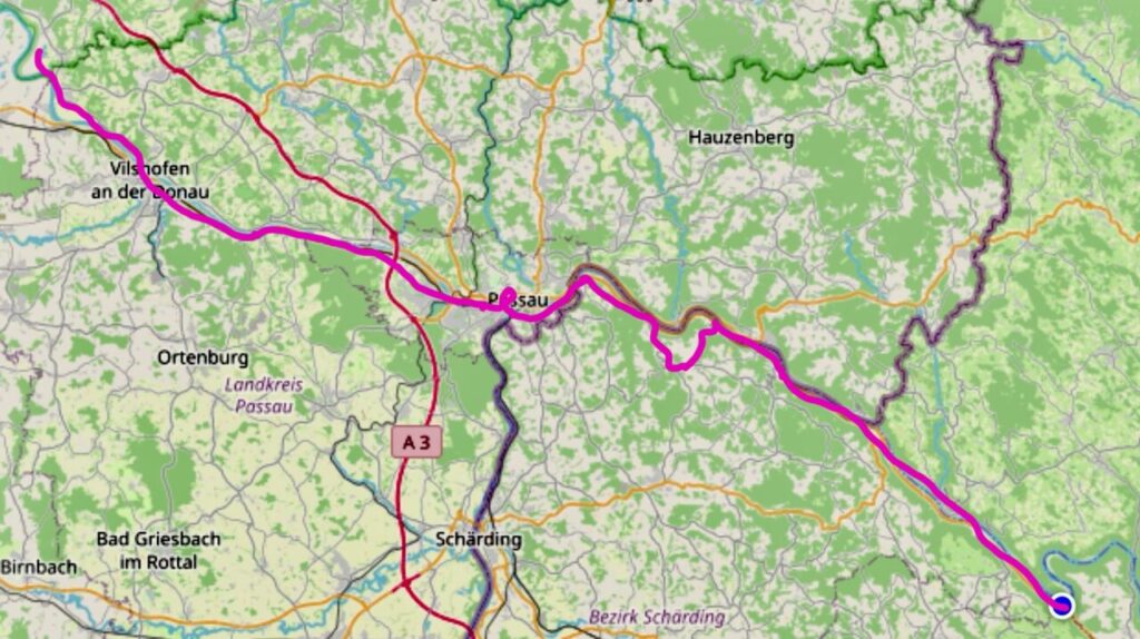 Dann nach Passau, die Straße führt schön am Ufer der Donau entlang. Sie wirkt hier fast wie ein See, denn kurz vor Passau ist sie aufgestaut und ein Wasserkraftwerk produziert im Jahr Strom für 144.000 Haushalte.