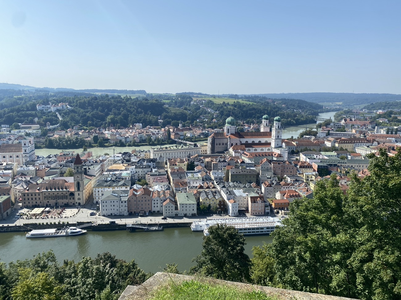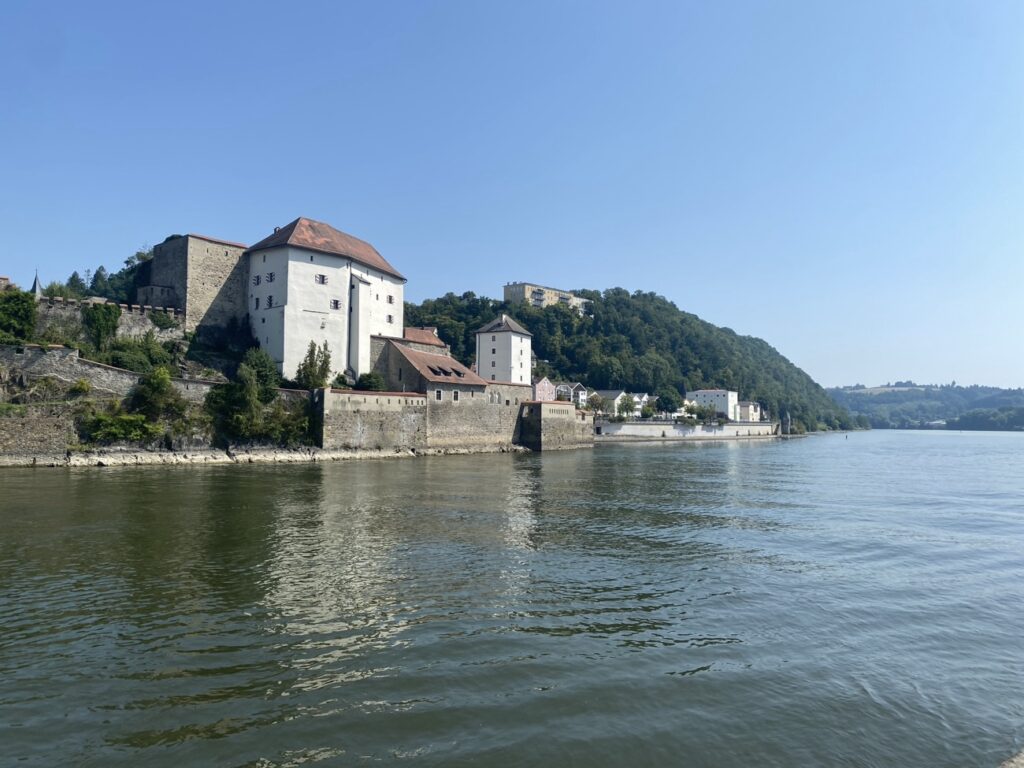 Passau liegt an 3 Flüssen. Hier münden der Inn und die Ilz in die Donau. Die Altstadt liegt auf einer schmalen, wie ein Schiffsbug geformten Halbinsel zwischen Inn und Donau. Verkehrstechnisch und parktechnisch schwierig.