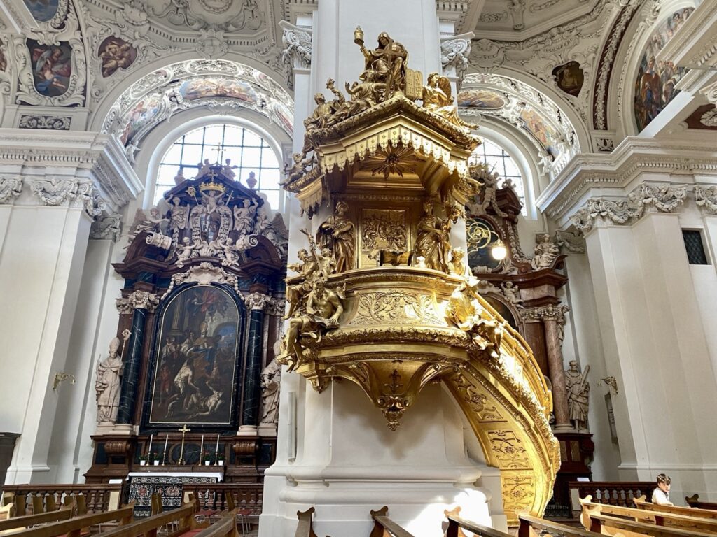 Vor allem der Dom quillt über von Skulpturen, Verzierungen und Malereien im Stil des italienischen Barocks. Und ist Vorbild für viele Kirchen in Bayern.
