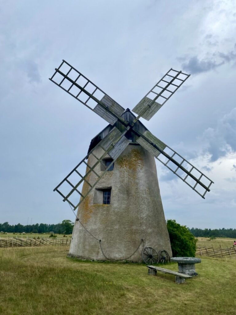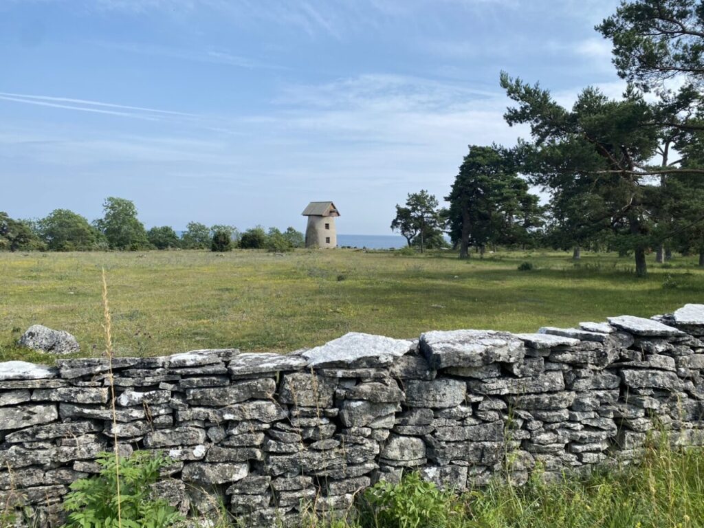 Wir kommen an einer der typischen Mühlen vorbei, aus Stein gebaut. Weil es auf Gotland im Vergleich zu Rest-Schweden nur wenig Holz gibt, wurden Häuser schon sehr früh in Stein gebaut. Außerdem ist der Kalkstein gut verfügbar.