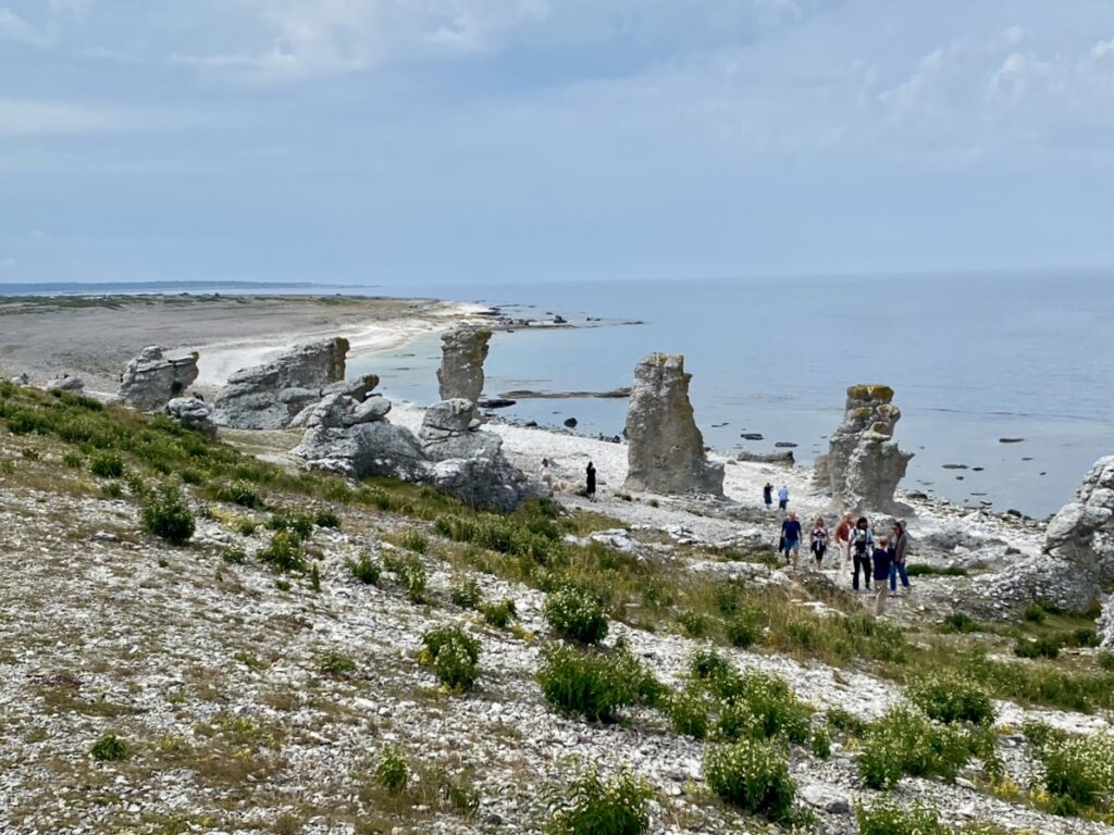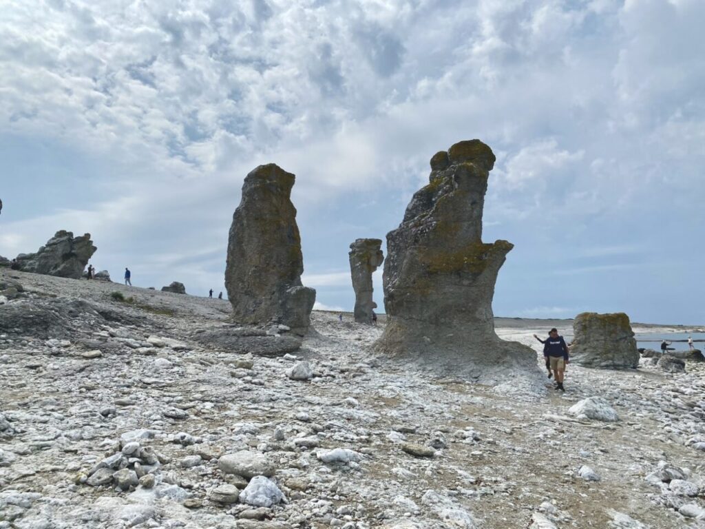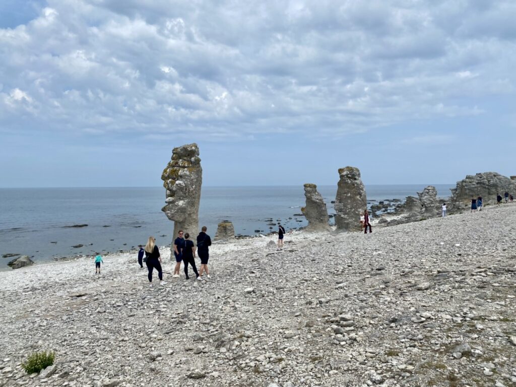 Am Langhammars Raukar Gebiet ist ordentlich was los, der Parkplatz ist gut gefüllt. Kein Wunder bei dem Sightseeing-Highlight. Drei der Felsen sind ja sogar auf dem schwedischen 200 Kronen Schein abgebildet.