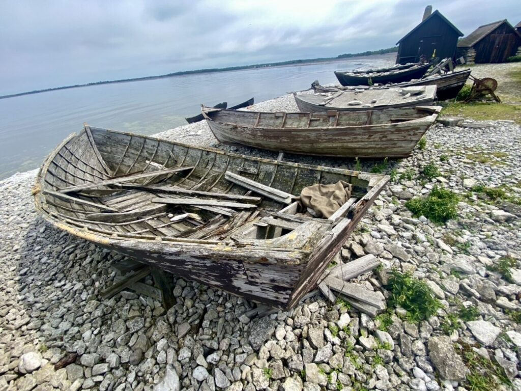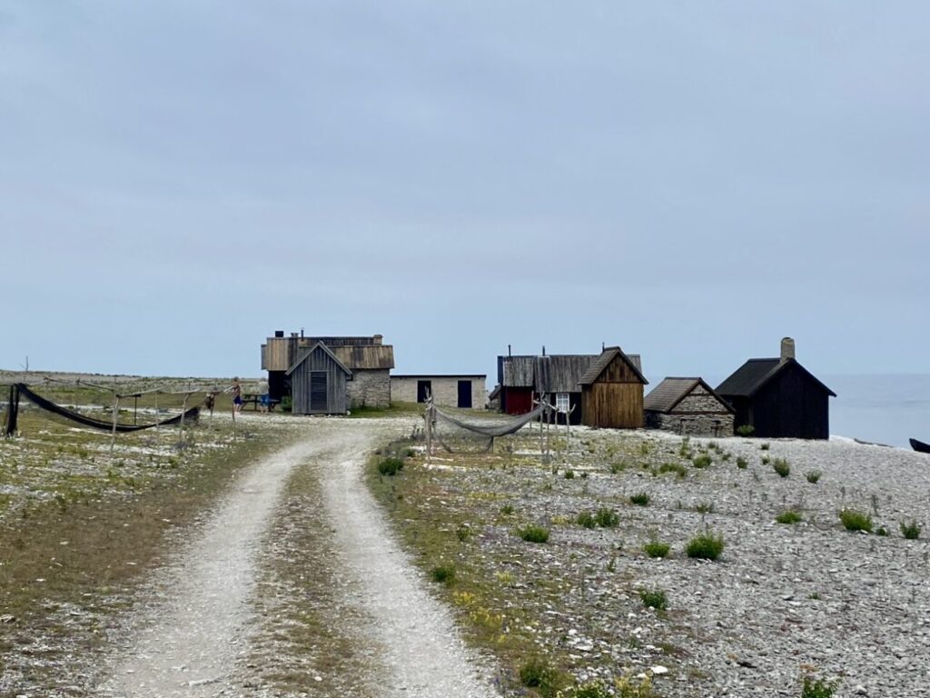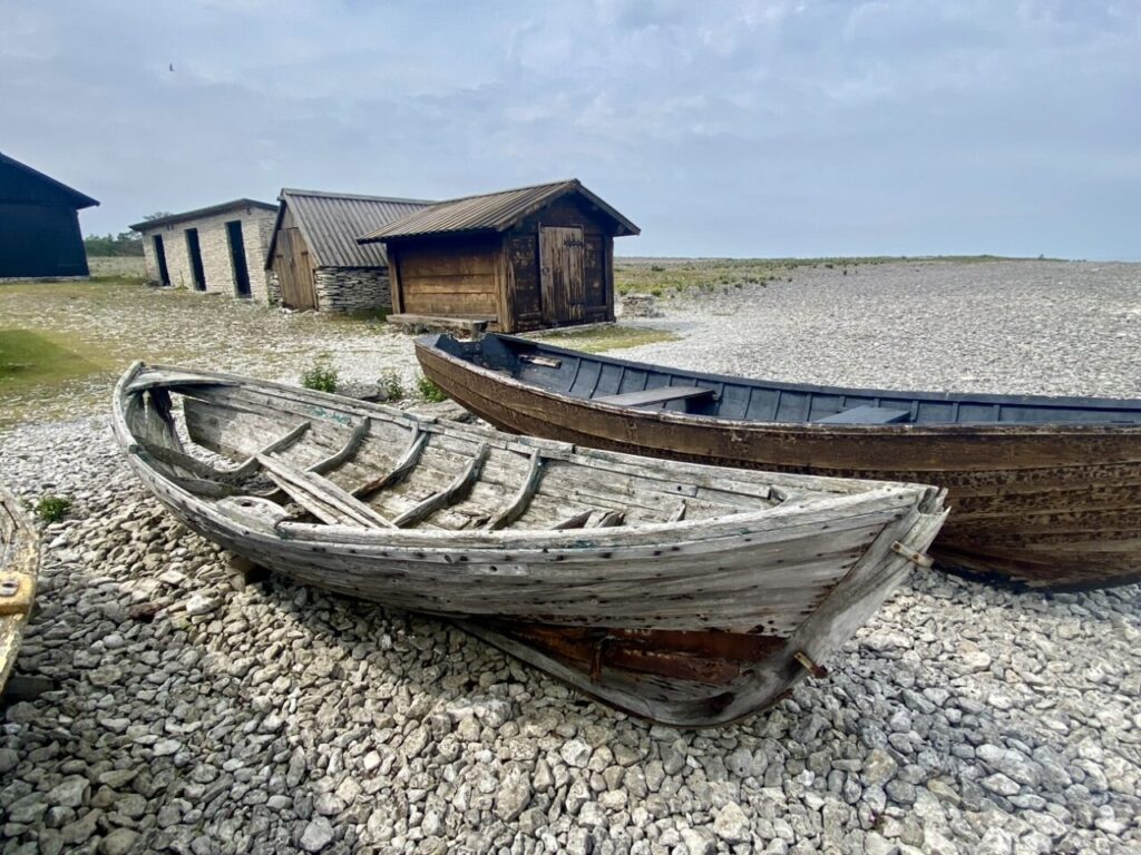 An weiteren Küstenabschnitt folgt ein Raukar Gebiet dem andern. Alle Stadien der Felsauswaschungen sind zu besichtigen. Eine Fischerhüttengruppe liegt malerisch am Strand. An den teilweise intakten Booten und den neuen Vorhängeschlössern erkennt man, das der Fischerplatz noch genutzt wird.