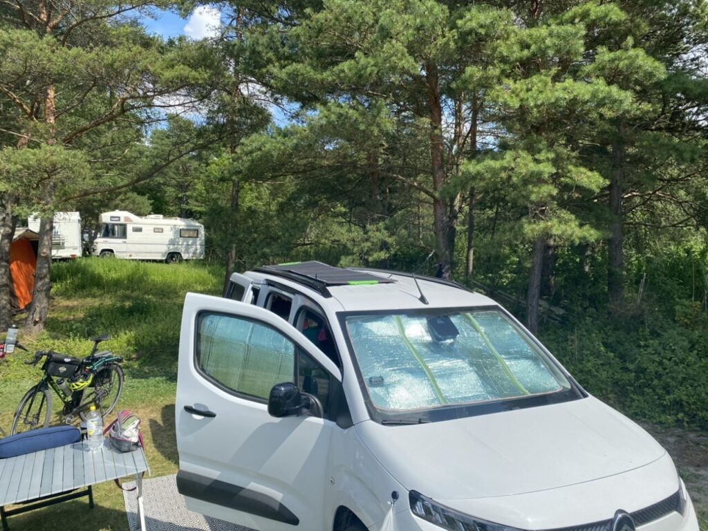 Zurück bei uns an der Beach ist schon wieder ordentlich was los. Und es ist heiß, wir verharren im Schatten. Die Schweden sitzen auch gerne in der Sonne. Wahrscheinlich weil der Sommer so kurz ist, da muß jeder Sonnenstrahl genutzt werden. Derweil produziert unser faltbares Solarmodul auf dem Autodach ordentlich Strom.