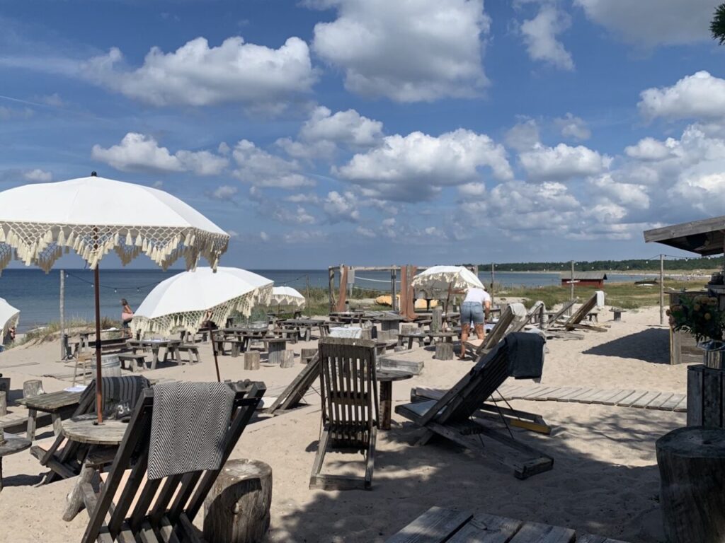 Dann gibt es noch einen Kaffee im Strandcafé der Pension Warfsholm. Jetzt haben wir die Strandcafés hier in der Gegend wohl auch alle durch.